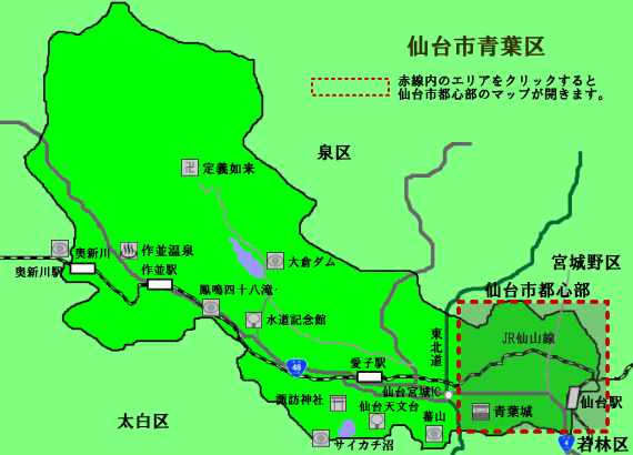 仙台市街地から西へ広瀬川の上流、関山街道(現国道48号線)にある古い温泉郷です。