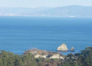 からは嵯峨渓の島と遠く牡鹿半島が見渡せます