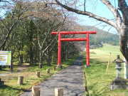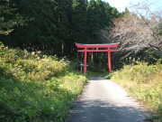 | 軽い準備運動のあと、早速登山を開始しました。写真の鳥居が山への入口です。 |