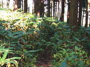 山道は急に細くなり、道には笹が覆いつくし、笹薮をこぎわけるように進んでいきます。突然、「ガサガサ」と音がし、その方向に目をやると一羽のキジが横切っていきました。さすが自然公園! |