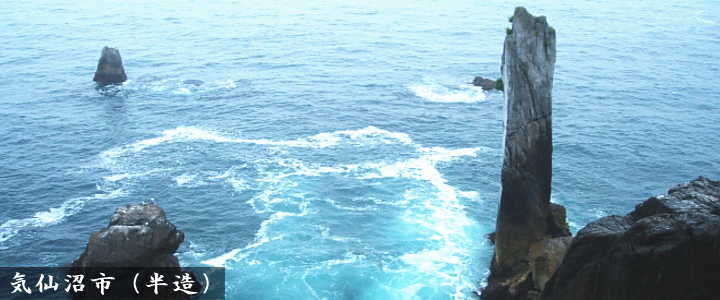 | 唐桑半島の最奥にある岬で海食によって出来た、岩礁奇岩が連続し太平洋の荒波が打寄せる勇壮な景観を楽しめることで知られている岬です。 |