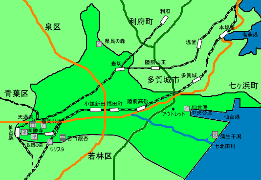 七北田川の河口である蒲生一帯は鳥たちの楽園としてよく知られていいます。かつては日本一低い山、日和山があることでも知られていました。(現在二位) |