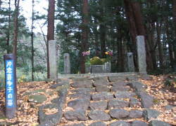 田村清顕の墓 入口です 墓の周囲木が茂り昼でも暗いです 真ん中の大きいのが田村清顕の墓です