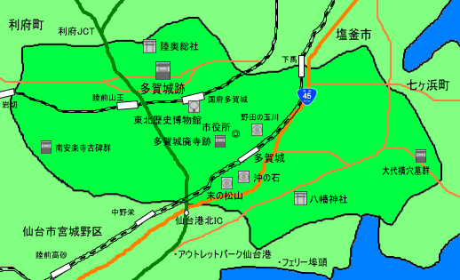 多賀城は朝廷により陸奥国の国府が置かれていま所で奈良・平安時代政治・文化・軍事の中心地でした。多賀城跡では国府の跡の他、町並の跡等も見られます。 |