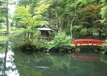 境内の池は、約400年前に造られたもので、ウグイが生息し国の天然記念物に指定されています。直径80m余りの楕円形の池にはウグイが回遊し透き通った池の水にその姿を見ることができます。生息地はこの池と加茂川・締切沼一帯がおもな生息地となっています。横山不動尊のウグイは4月〜5月にかけて、いったん池を離れて産卵をし8月頃、再びこの池に戻ってくるという習性をもっています。