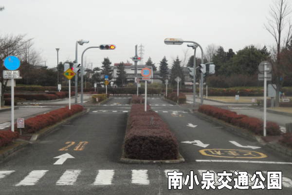 南小泉交通公園は敷地内に自動車の道路のようなコースが廻らされており、無料で貸してもらえる自転車やゴーカートに乗ってコースを楽しむことが出来ます。
