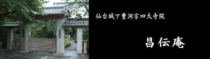 <昌伝庵について> 伊達政宗の移封にともない、米沢・岩出山を経てこの場所に移ってきました。江戸時代には仙台城下曹洞宗四大寺院 の1つとして広壮な伽藍をほこっていましたが、数度に渡り火災にあい、衰えていきました。境内続きには仏眼寺があり 荒町広場を通り行き来することができます。周囲はマンションなどの高い建物に囲まれており喧騒の中の静かな空間と なっており、近隣の寺院などとあわせて散策路としても魅力的なものがあります。 仙台城下曹洞宗四大寺院(曹洞四録司)は他に、輪王寺・松音寺・泰心院があります。 <東東陽について> 境内には仙台の生んだ画家、東東洋(あずまとうよう1755〜1839)の墓があります。東東洋は江戸時代に活躍した 画家で仙台藩の御用絵師を務め、仙台城二の丸再建時の障壁画や藩校養賢堂障壁画制作にも携わったといわれて います。小池曲江・菅井梅関・菊田伊洲とあわせて仙台四大画家といわれていました。伊達家から寄贈されたという 「松に山鳥図」は仙台市の文化財に指定されており、仙台市博物館に収蔵されています。